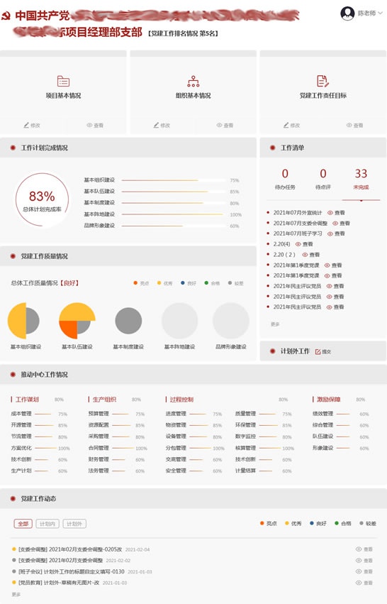任務下派、工作計劃上報、評先評優(yōu)、支部考核、資料匯總等智慧化管理、無紙化辦公、精準高效開展黨建工作。