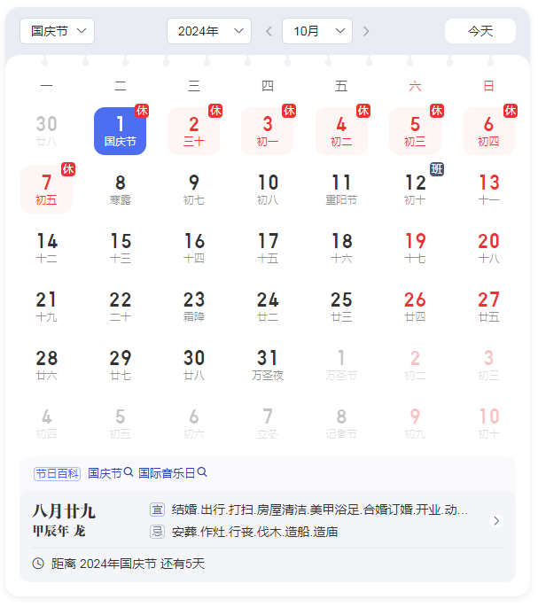 在2024年國(guó)慶節(jié)即將來(lái)臨之際,根據(jù)國(guó)務(wù)院辦公廳公布的通知精神,結(jié)合我公司實(shí)際情況,現(xiàn)將國(guó)慶節(jié)放假通知公布如下: